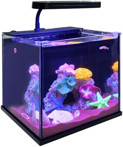 Betta Nemo Fish Tank Small Aquarium Starter Kit with Filter and Light Low Iron Ultra Clear Glass 2 Gallon (Saltwater Black)
