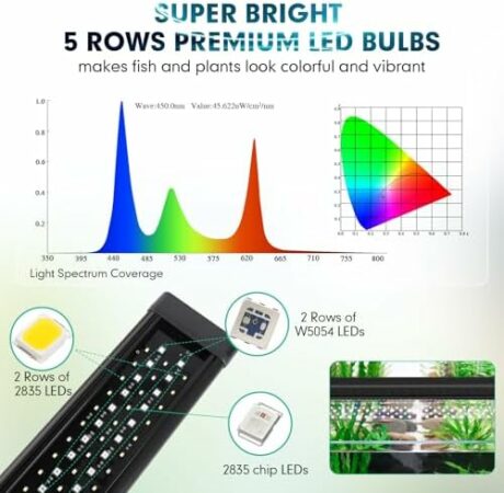 hygger 50W Smart Aquarium Light, Bluetooth LED Light with App Control, Full Spectrum Fish Tank Light with 24/7 Lighting Cycle, 5 Modes, Adjustable Timer, for 36″-42″ Freshwater Planted Tank
